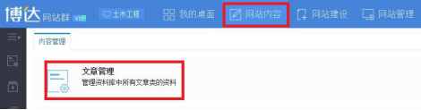 2、在网站内容栏目栏目下点击文章管理。