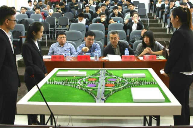 大赛期间,各参赛队伍依次入场进行立交桥设计方案介绍、ppt演讲、动画展示、模型展示和答辩。各评委老师悉心指导,认真评选,对每一组的设计方案都提出了宝贵的意见和改进措施,并进行了公平公正的评选。经过各组的激烈角逐,我院三个代表队全部获得一等奖。