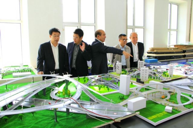 嘉宾欣赏参赛队立交桥模型作品