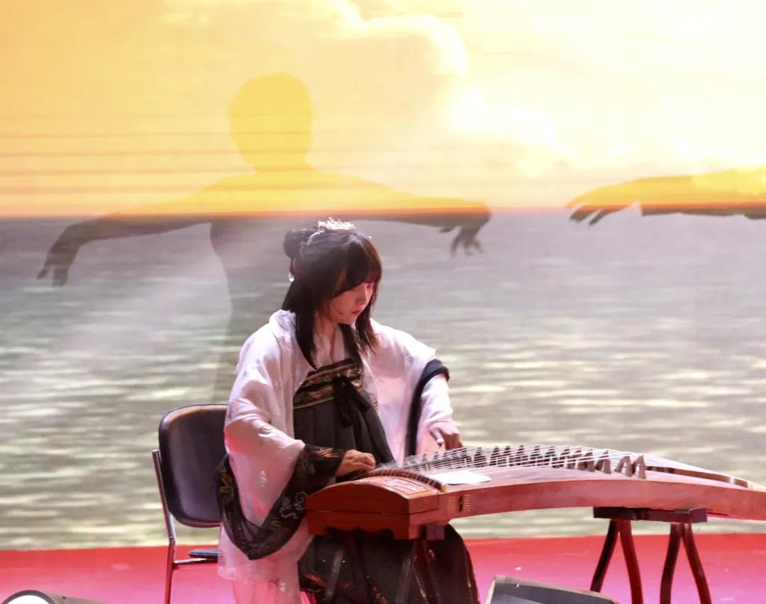 一台电子琴,一架古筝,余音袅袅,风风韵韵奏出了空灵悠远的意境;两位舞者翩若惊鸿,婉若游龙舞出了鲲与椿至死不渝的爱情,乐器《大鱼海棠》中国风十足!