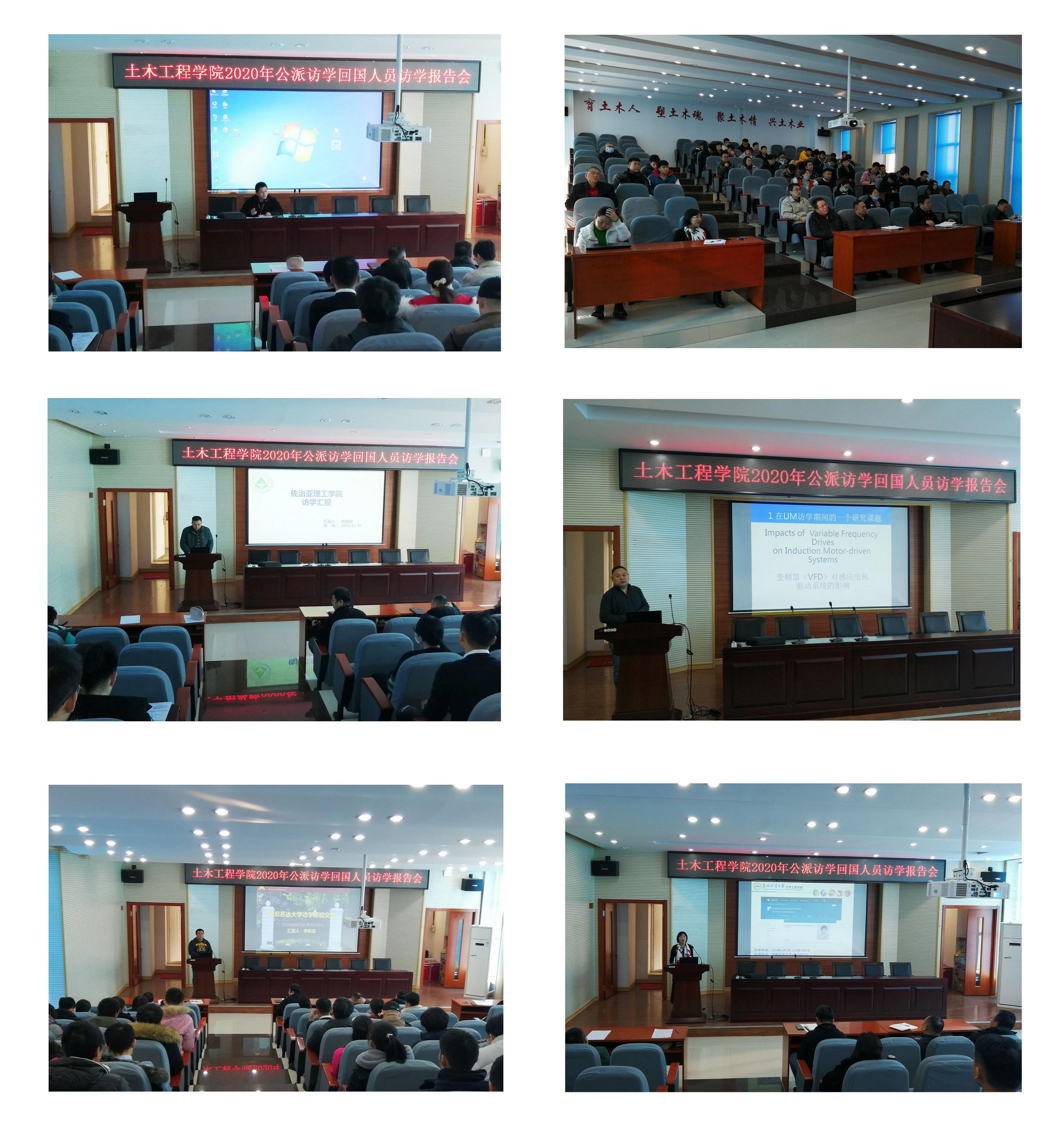 2020年11月30日上午10点,在学院主东301学术报告厅, 土木工程学院2019-2020年公派出国访问的4名教师做了回国访学报告,分享了一年来在国外的学习和生活经历。学院王立峰副院长作了会前致辞,学院相关学科教师和研究生们参加了此次活动。