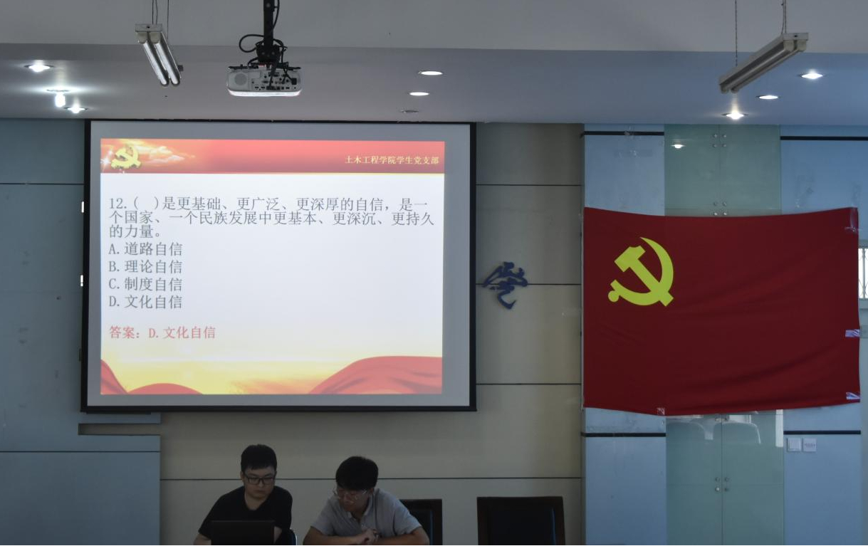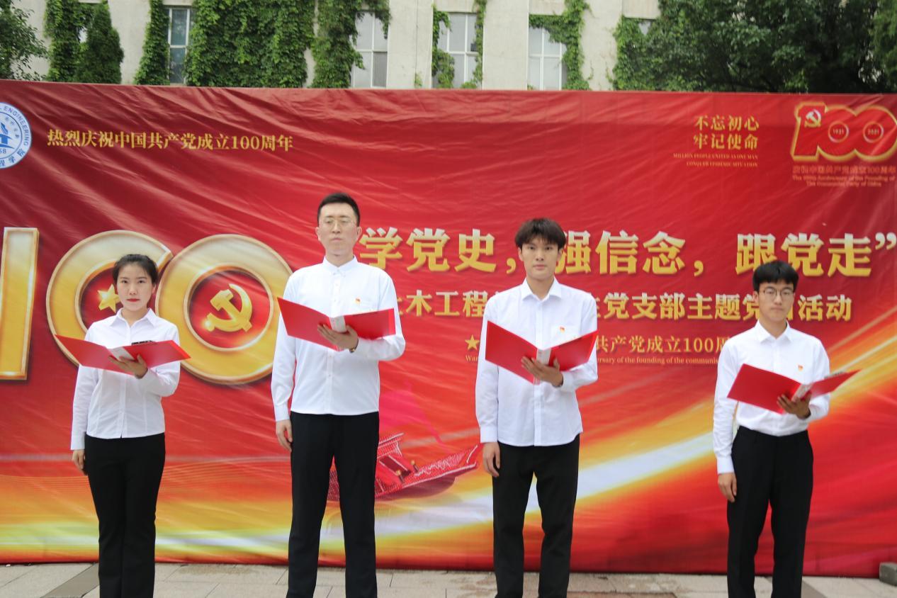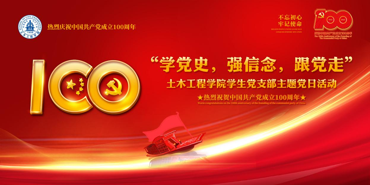 百年恰风华。百年之前,一代代革命先辈的矢志奋斗,百年之后,一个个蓬勃的青春梦想再次起航。回顾中国共产党百年奋斗历程,红色基因在一代又一代党员间传递。每一次对党的回望,都是一次对精神的洗礼、对初心的叩问,都是一次信仰的集结、奋斗的冲锋。本次土木工程学院学生党支部“学党史,强信念,跟党走” 主题党日活动通过形式多样的小活动,强化青年党员对党史教育入脑入心的学习,使每一名同学对党的奋斗历程和伟大成就领悟深刻,做到牢记党的性质宗旨,牢记党的初心使命,不懈奋斗,永远奋斗,决心在全面建设社会主义现代化国家新征程上,向着第二个百年奋斗目标、向着中华民族伟大复兴的中国梦奋勇前进。
