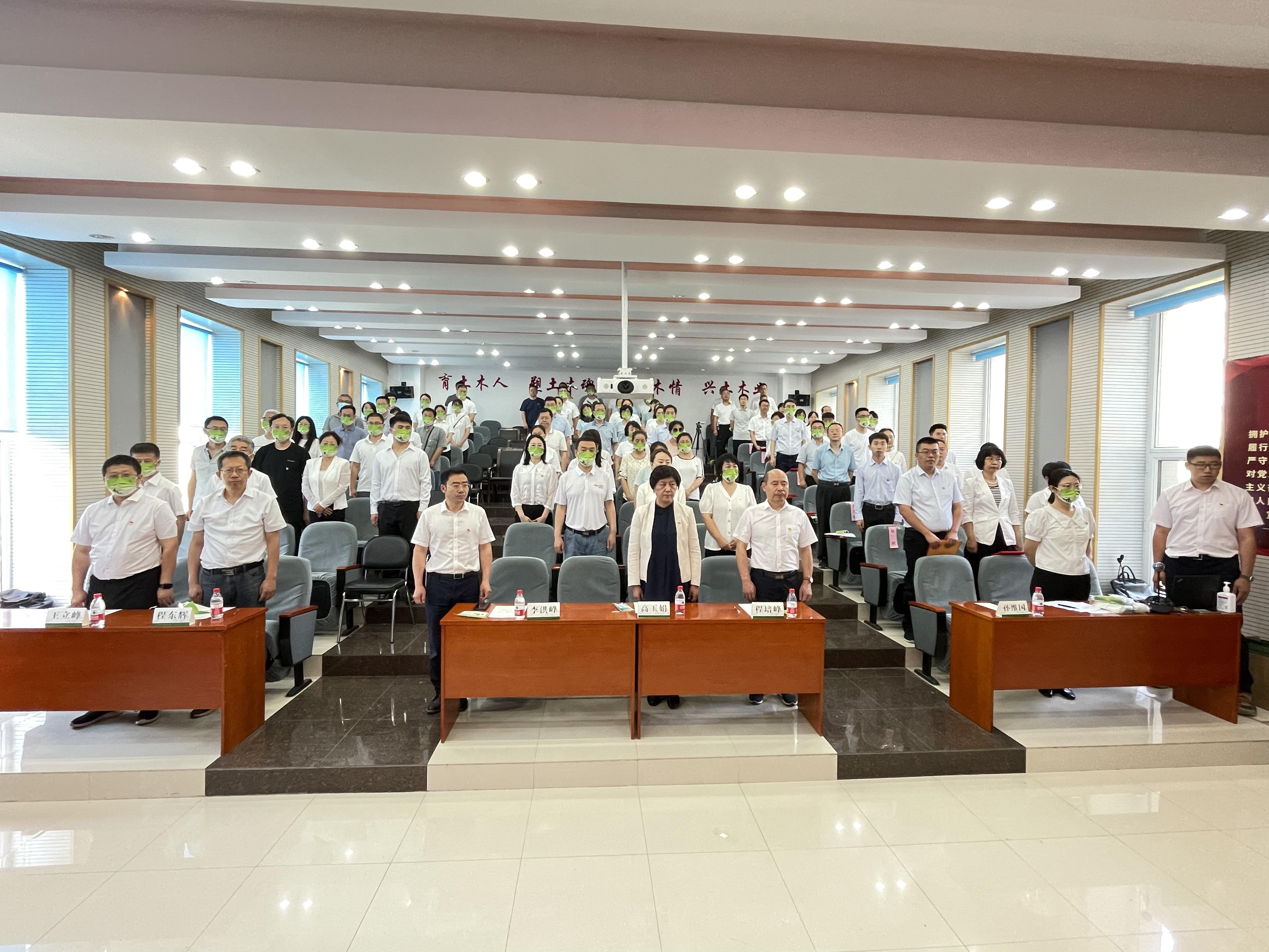 会议伊始,学院全体师生庄严面向党旗,全体起立奏唱国歌。