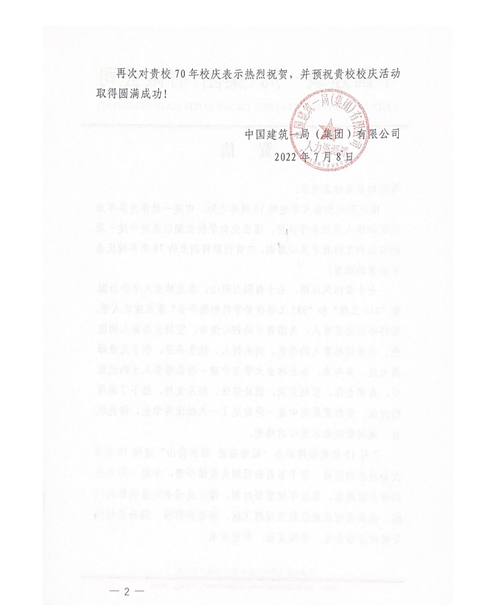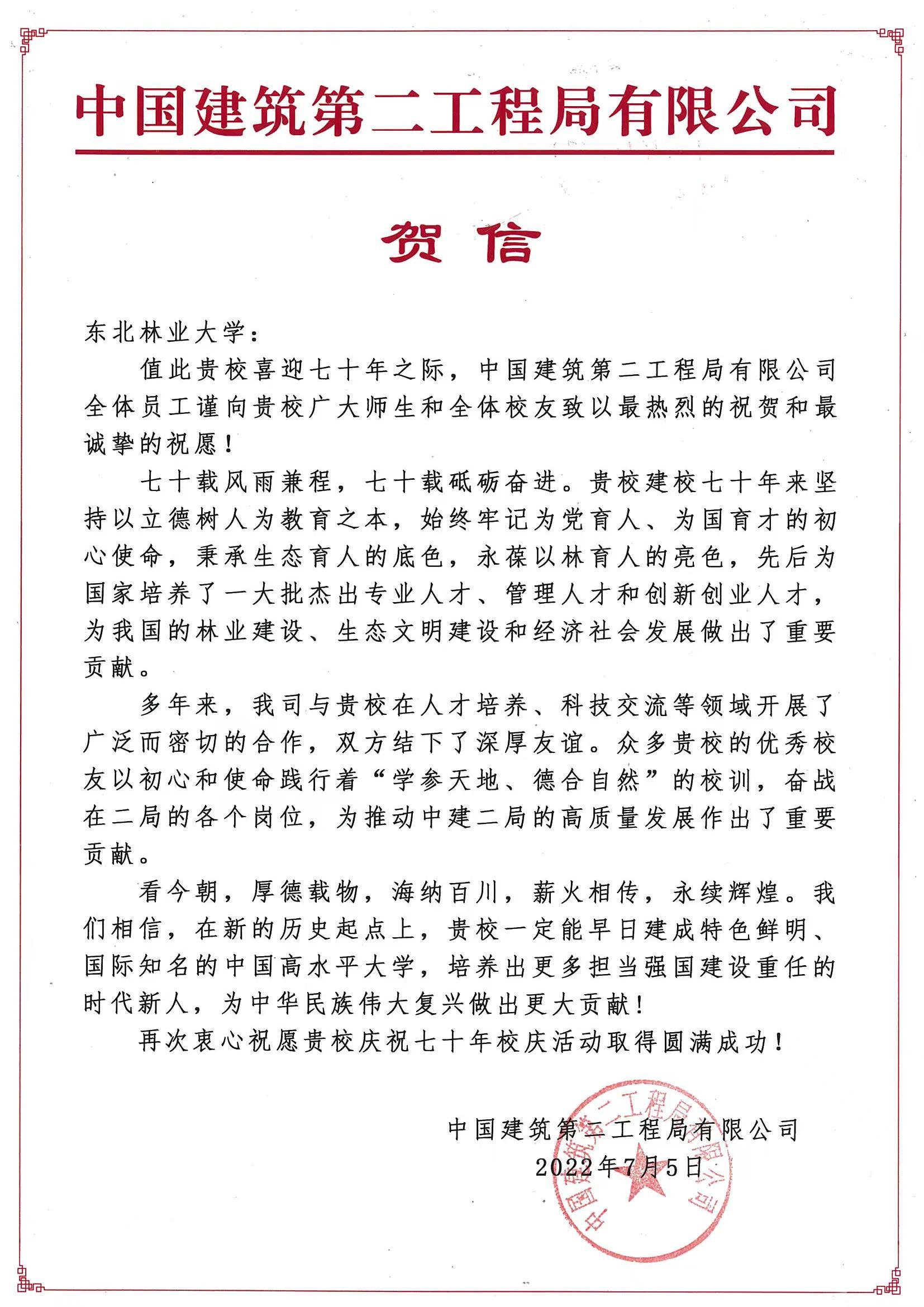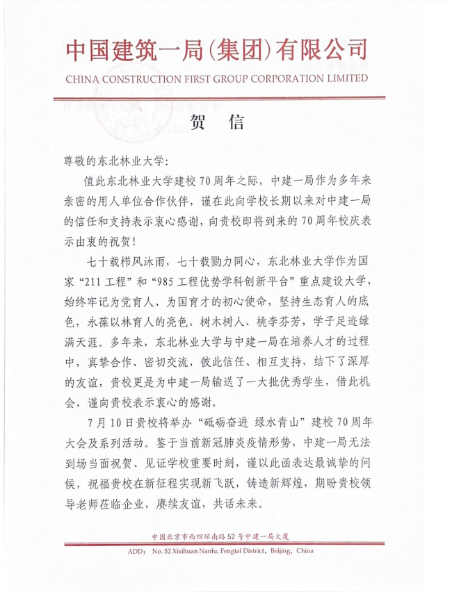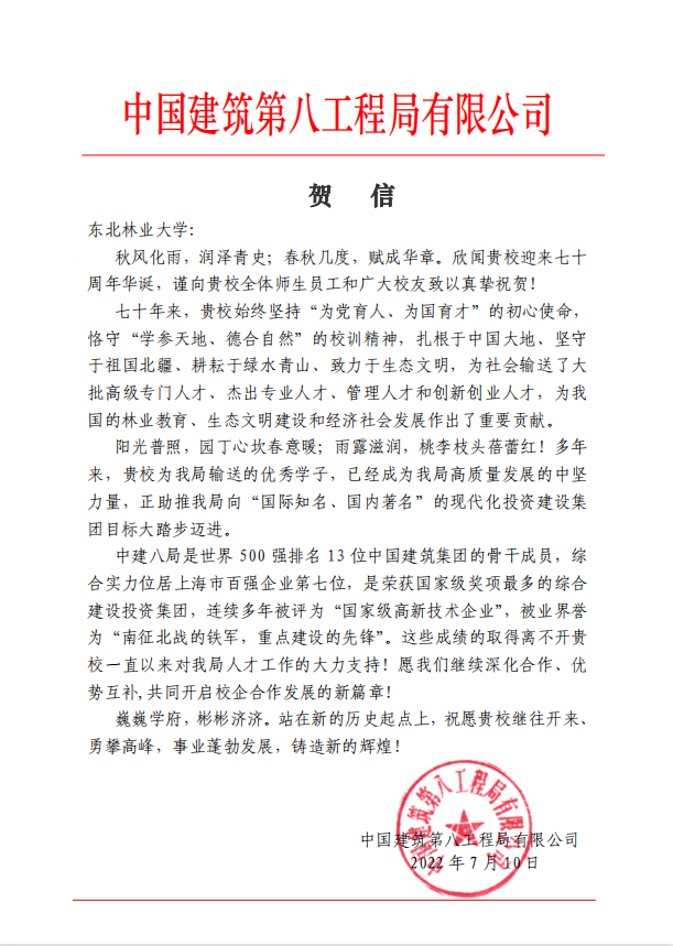 盛世盛夏,喜逢华诞,七十载辛勤,硕果累累;七十载风险,哺育芳华;七十载辉煌,桃李满天下。在校庆倒计时1天之际,我院友好单位的贺信纷至沓来。真诚的祝福,恳切的希望,温暖了东林人拼搏时光,也赋予了东林土木人开拓未来的力量。这些贺信贺电是我们莫大的财富,全院师生将把贺信贺电中的肯定和鼓励,化为继续进取的力量,共同推进东林土木事业又好又快的发展。