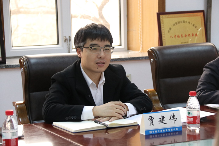 会议第二项,中建六局轨道交通公司副总经理、总工程师贾建伟介绍了六局轨道的发展历程、战略布局及人才培养机制,明确表示了六局轨道在基础设施等方面的明显优势,希望未来能够依托土木工程学院的人才和科技优势,共同迎接时代挑战,实现合作共赢。