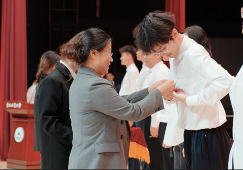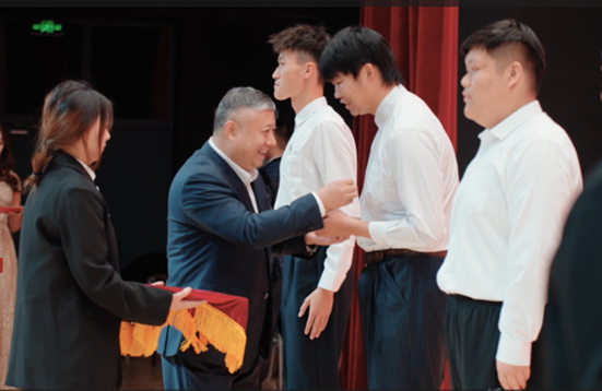 晚会期间,KY开元集团官网党委副书记、纪委书记宋吉红,北京中建一局建设发展公司总经理助理、人力资源部总经理薛连建为八名学生代表佩戴校徽。并由薛连建经理发表讲话:希望2023级同学们能够一往无前,用坚韧和智慧迎接未来的挑战,传承发扬东林精神,展现青春力量,开启崭新篇章,擘画全新蓝图。