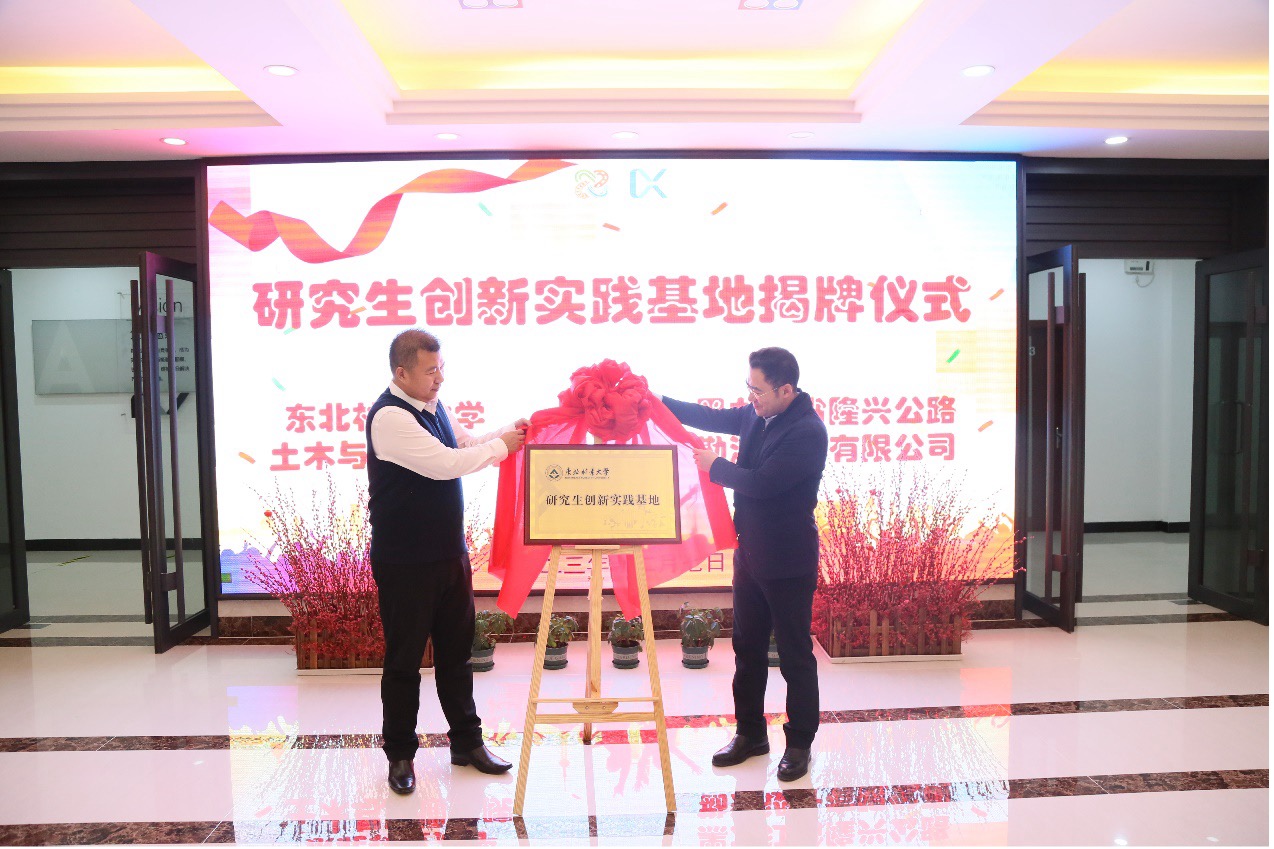 交流会后,隆兴公路勘察设计有限公司董事长王佳昌及企业代表和KY开元集团官网KY开元集团官网党委书记李洪峰及学院相关领导至公司一楼进行了研究生创新实践基地揭牌仪式。至此,我院在隆兴公路勘察设计有限公司的实践基地正式落成。此举深化了双方的合作纽带,进一步推动了校企资源优势互补,对我院研究生就业与实践培养具有重要的意义。