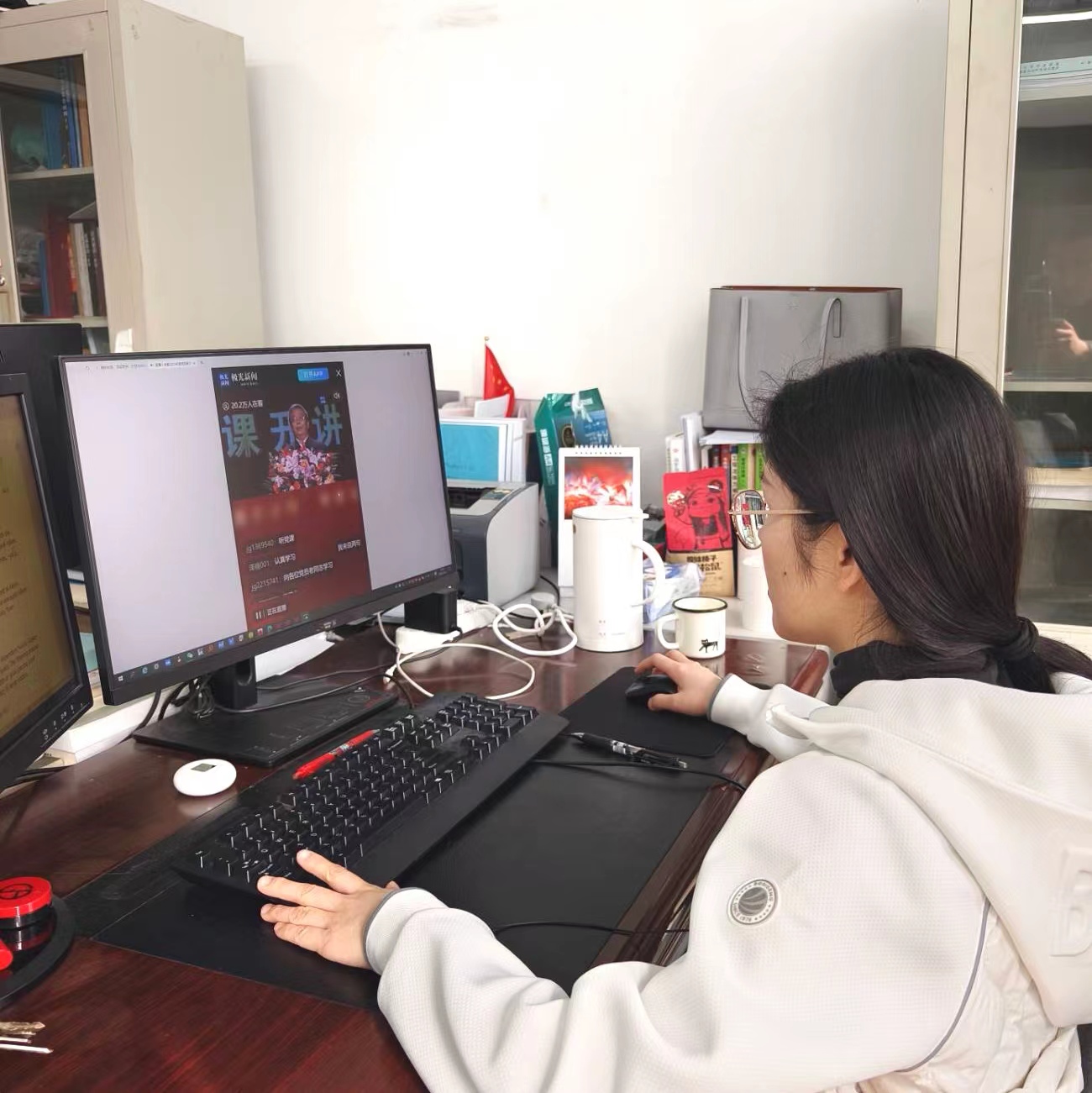 观看过程中,每位同学都聚精会神、认真记录,研究生党员代表表示“这场党课是一种重要的学习和交流机会,帮助我们更加深入了解党的理论和实践,提高政治觉悟和思想素质。同时,党课也可以帮助我们广大研究生党员更好地发挥党员的先锋模范作用,给大学生党员在未来的生活和工作中答疑解惑,共同努力让青春之花绽放在党的第一线。”