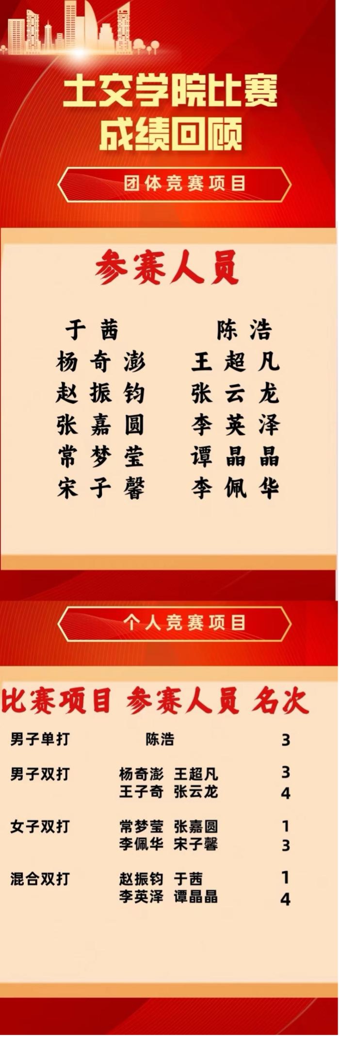 这是一次凝心聚力的比赛!它不仅点燃了同学们的体育热情,更让我们看到了赛场上肆意的青春。取得的优异成绩更离不开选手们的厚积薄发。他们凭借着比赛技巧和高超的能力,以昂扬的斗志和顽强不屈的精神,夺得了这次比赛的胜利。