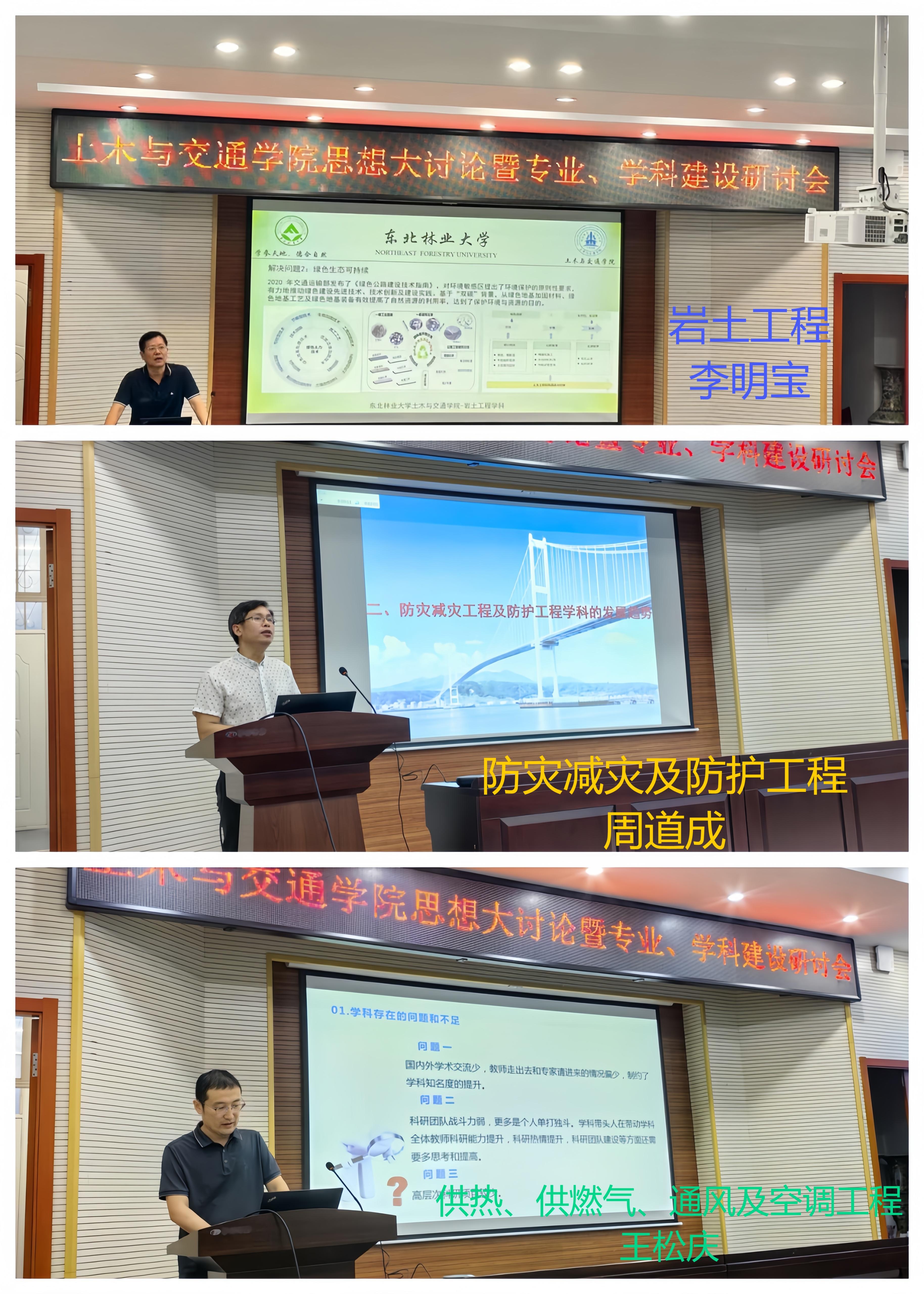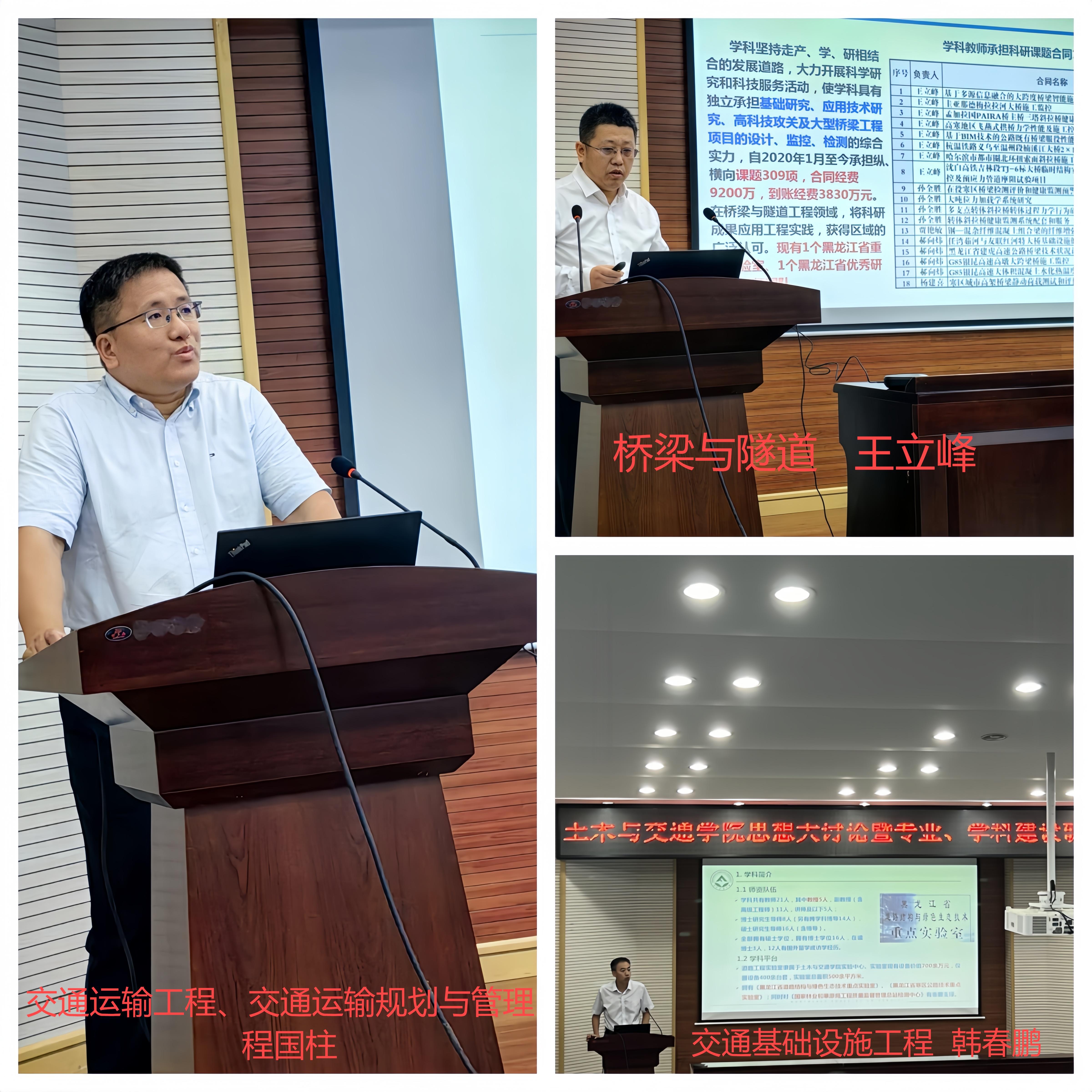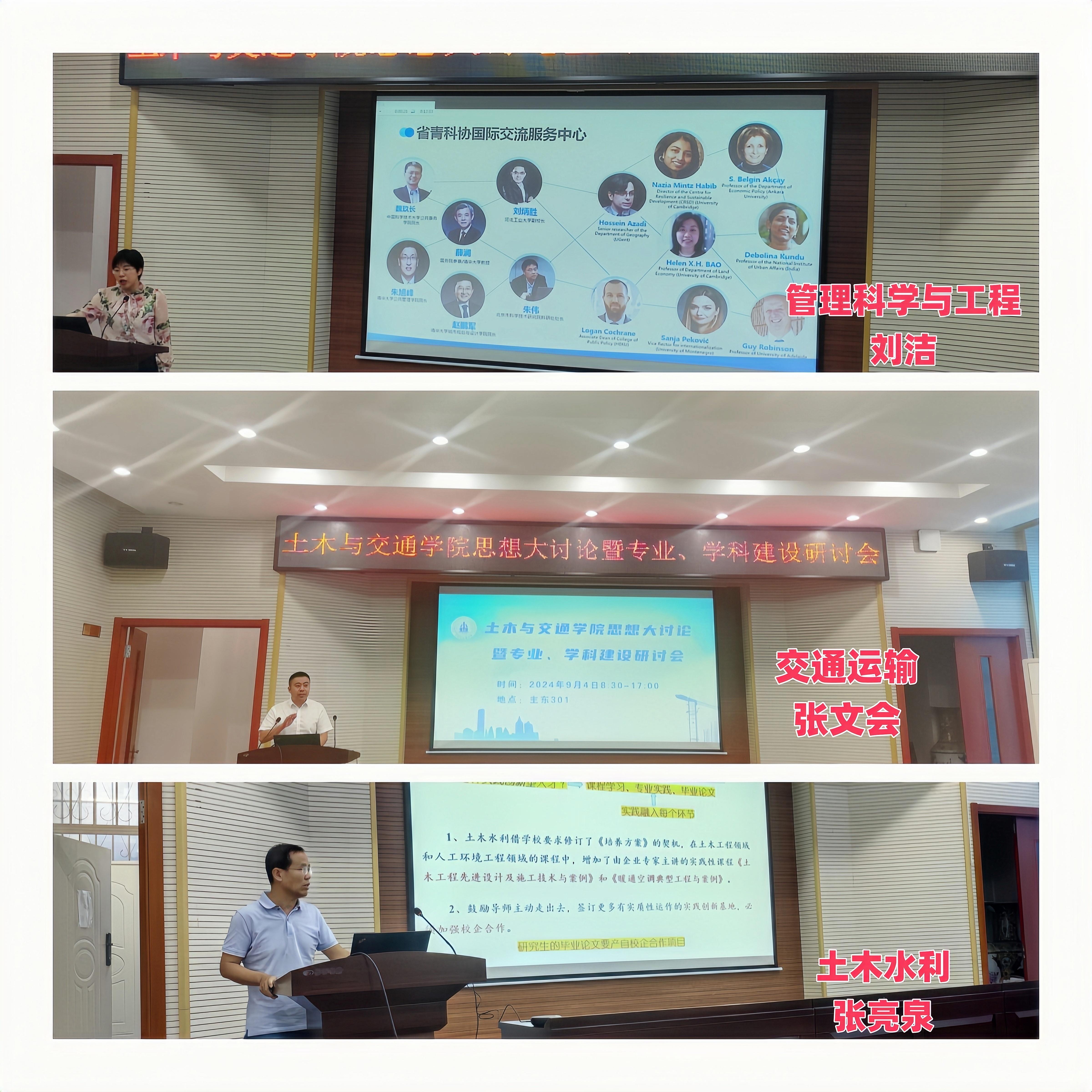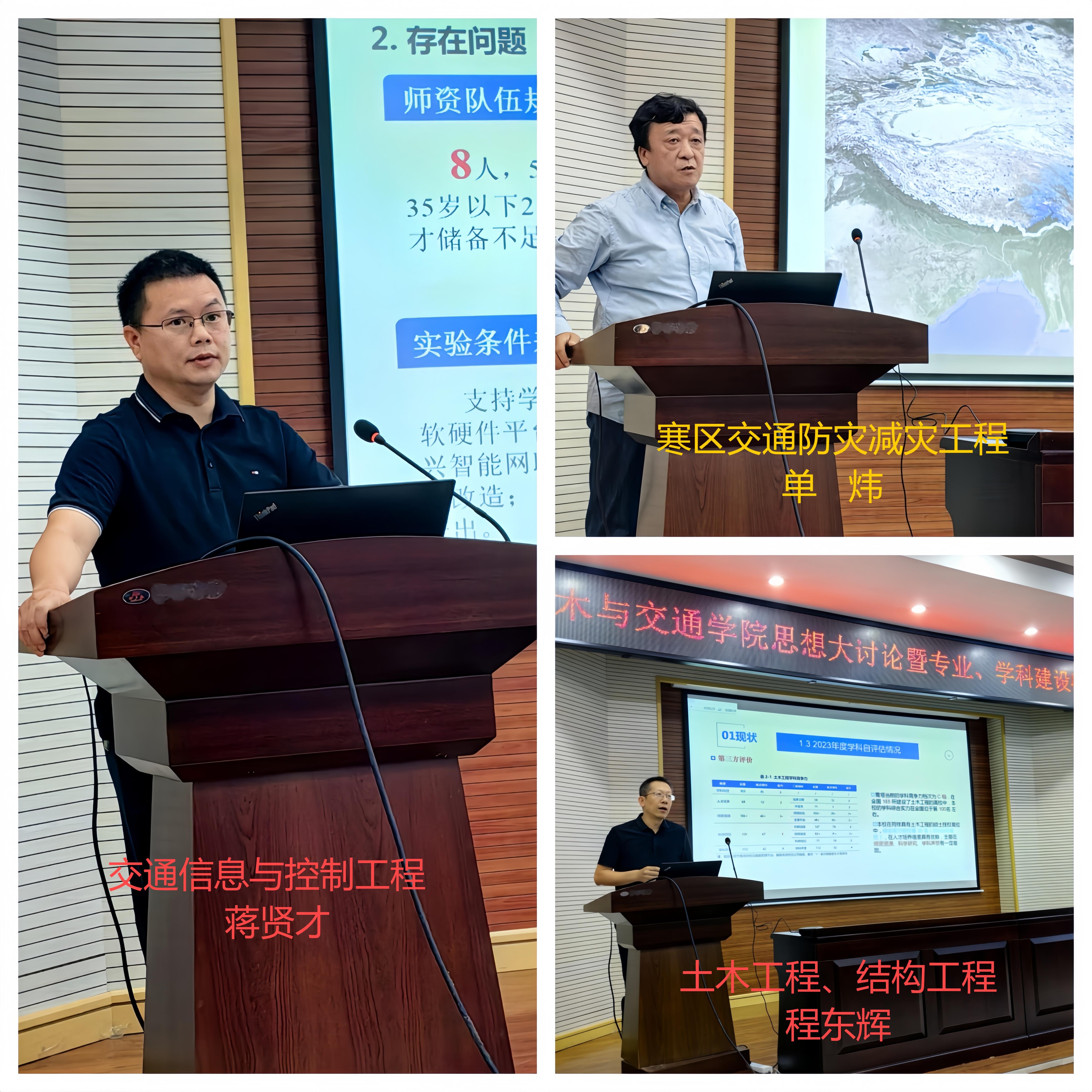 会议分两个阶段进行,上午召开专业建设研讨会,由教学副院长张文会同志主持。各专业教研室主任分别就专业建设相关内容进行汇报,包括“新形势下土木工程专业的建设思考”、“筑基未来,强化国际视野—土交学院桥梁教研室建设研讨报告”、“土木工程专业(建筑工程方向)的升级改造探讨”、“浅淡新质生产力和新工科背景下的土木工程专业(岩土与地下工程方向)发展途径”、“在细分领域发力,打造国际工程法律人才培养基地”、“新工科背景下东林建环专业发展研讨总结与汇报”、“交通工程专业建设规划”、“推进国家一流专业建设 培养高水平交通运输人才”、“智能建造与智慧交通专业建设规划”、“提升力学课程质量,助力工科专业发展”、“现代测绘技术发展与测量课程改革建设”等议题。汇报过程中,宋吉红、谢启芳等同志和专业教师分别就教师队伍建设、社会需求与人才培养差距解决办法等方面与专业和教研室主任进行了交流讨论。