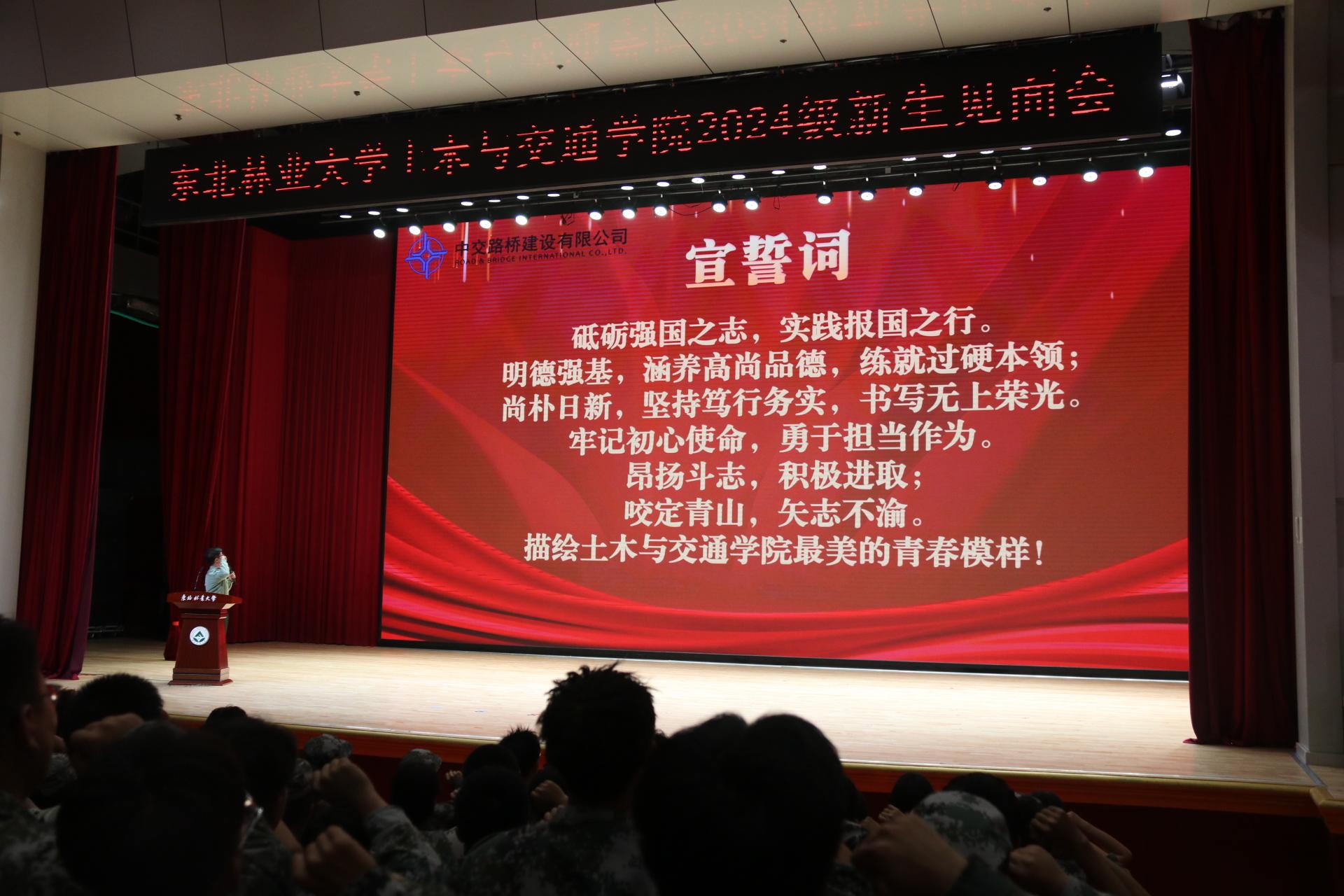 本科生辅导员孙爱伦带领新生宣誓,伴随着激昂的宣誓声,新生们的脸庞上都洋溢着坚定与憧憬,宛如初生的朝阳,充满了无限的希望。相信每位新生在这次庄严的宣誓后都将会以更加昂扬的斗志去迎接未来的挑战。