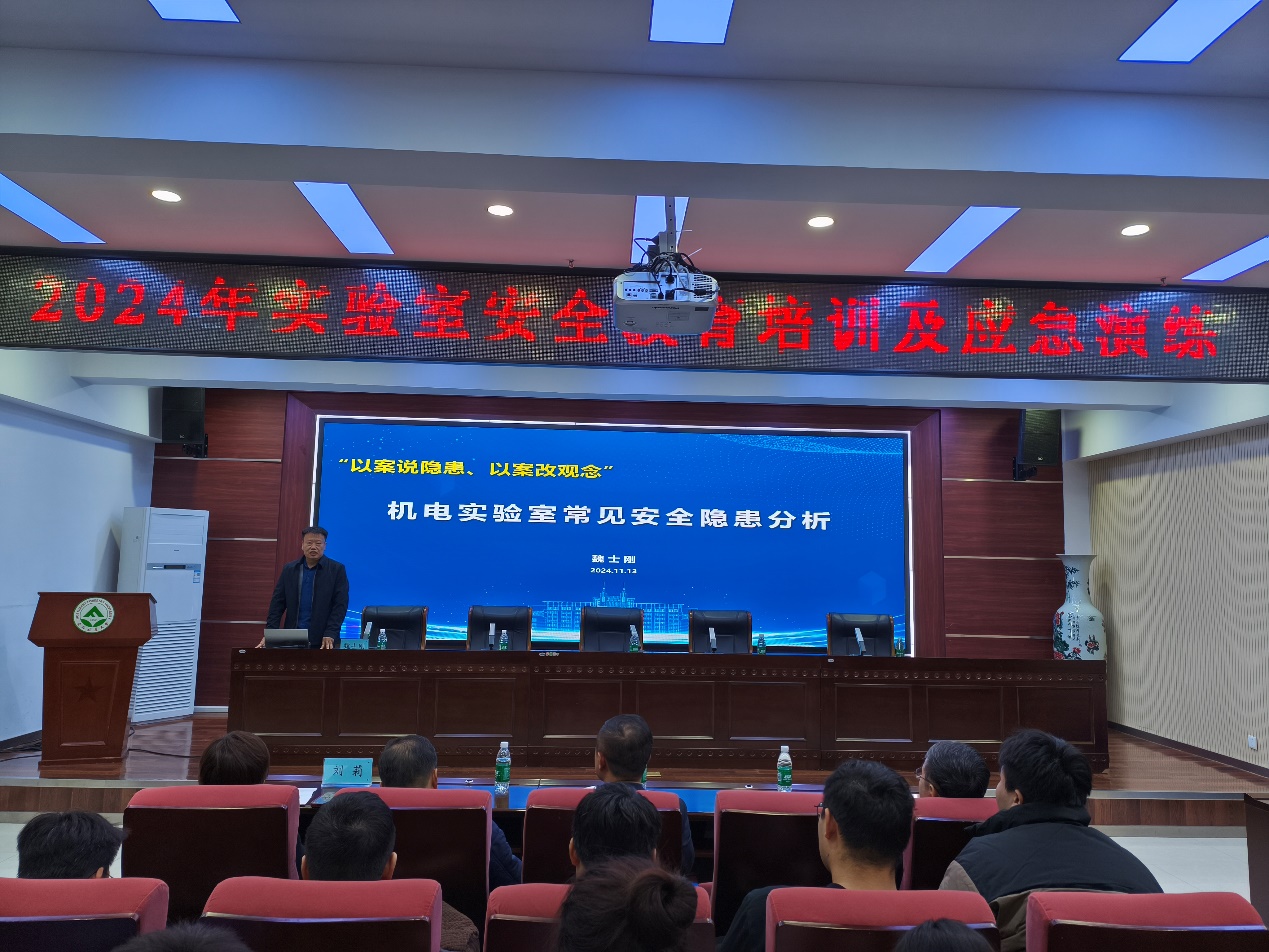 王玉龙处长在讲话中强调,实验室安全是教学与科研工作顺利开展的重要保障,讲述了高校实验室典型事故案例,引起参会师生共鸣。机电学院王佳彤书记表示,机电和土交学院高度重视实验室安全工作和师生生命健康,希望参会师生认真学习,主动思考,内化于心,外化于行。