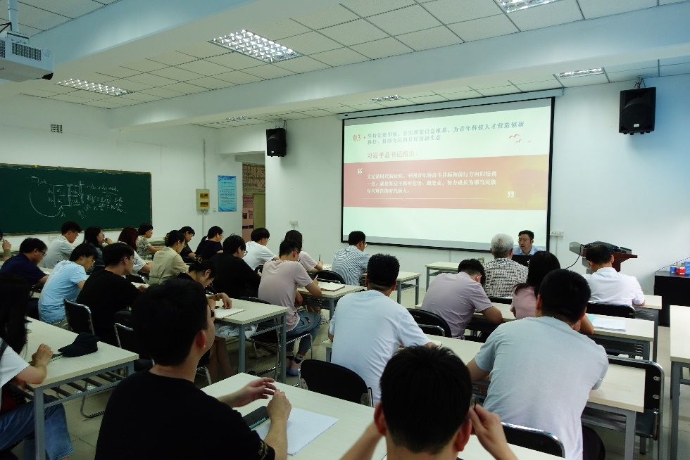 为深刻认识党的二十大关于人才强国战略的重要意义,贯彻落实国家战略人才力量建设,6月15日下午,党委书记李洪峰在主东211教室,以《教育、科技、人才“三位一体”融合发展背景下推进学院高质量发展》为题讲授主题教育专题党课。全体党支部书记、李书记所在党支部的全体党员,部分学生代表参加党课学习。