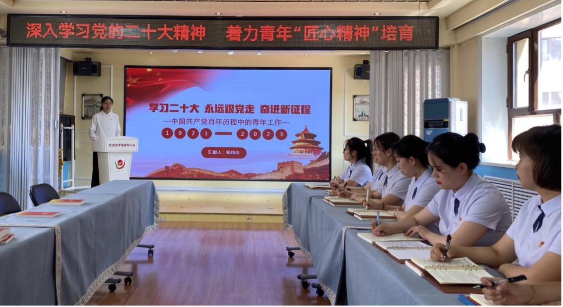 支部联建座谈会上,香坊幼儿园党员教师将二十大精神与自身教育经历结合,首先谈到了作为青年教师生逢盛世,要筑牢崇高理想信念的基石,把个人理想融入国家和民族的教育事业中、把个人命运与国家命运结合起来、把个人价值置于社会价值之中,在强国建设、民族复兴新征程上写下青春的华丽篇章。继续深入学习二十大精神,落实“根生蔓长、自在绽放”的教育理念,以“匠心”精神培育国家“新力量”。